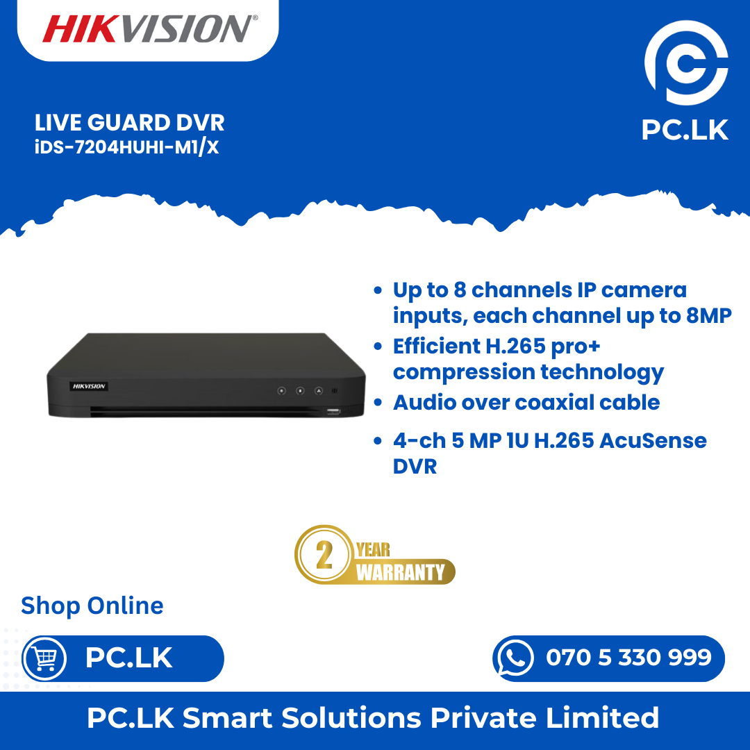 Upgrade your surveillance system today with the Hikvision IDS-7204HUHI-M1/X and experience intelligent, ultra-clear HD recording for your property. Order now from PC.lk and secure your home or business with confidence.