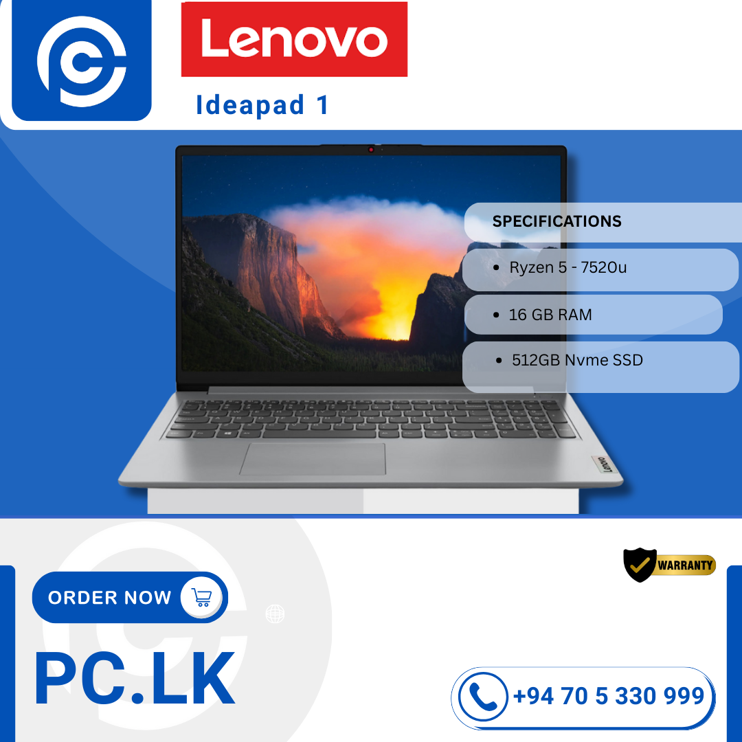 Lenovo Ideapad 1 Best Price In Sri Lanka The Lenovo IdeaPad 1 is a lightweight, affordable laptop designed for everyday use — such as web browsing, office work, online classes, video streaming, and general productivity. It comes in 14″ and 15.6″ display sizes and offers a range of processors from Intel Celeron / Core i3 to AMD Athlon / Ryzen depending on the model you choose. Lenovo Ideapad 1 Best Price In Sri Lanka