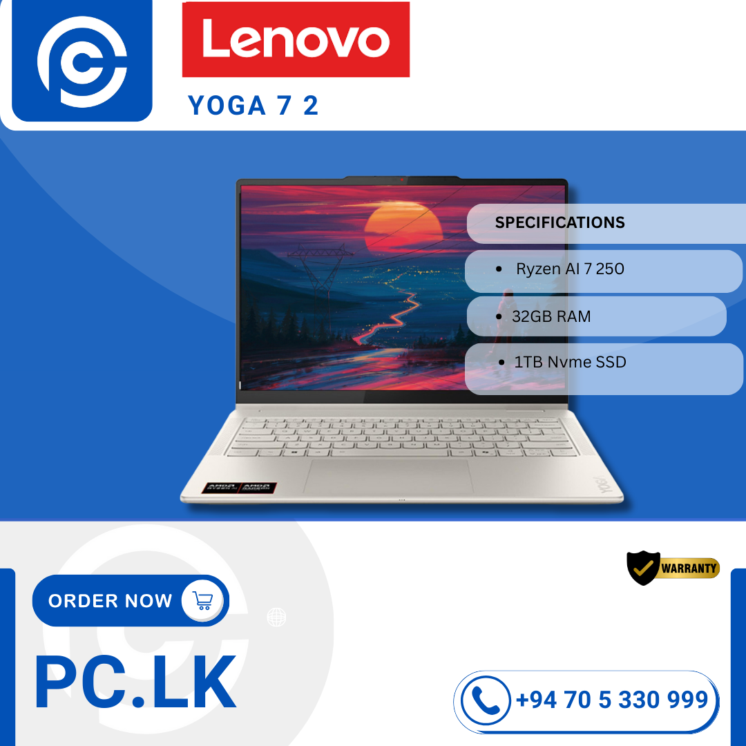 Lenovo YOGA 7 2 Best Price In Sri Lanka The Lenovo Yoga 7 2-in-1 is a premium convertible laptop that can transform between laptop, tablet, tent, and stand modes thanks to a 360° hinge — perfect for work, creativity, presentations, note-taking, or media consumption. Its touchscreen support and optional digital pen make it ideal for drawing, annotating, and touchscreen interactions.Lenovo YOGA 7 2 Best Price In Sri Lanka