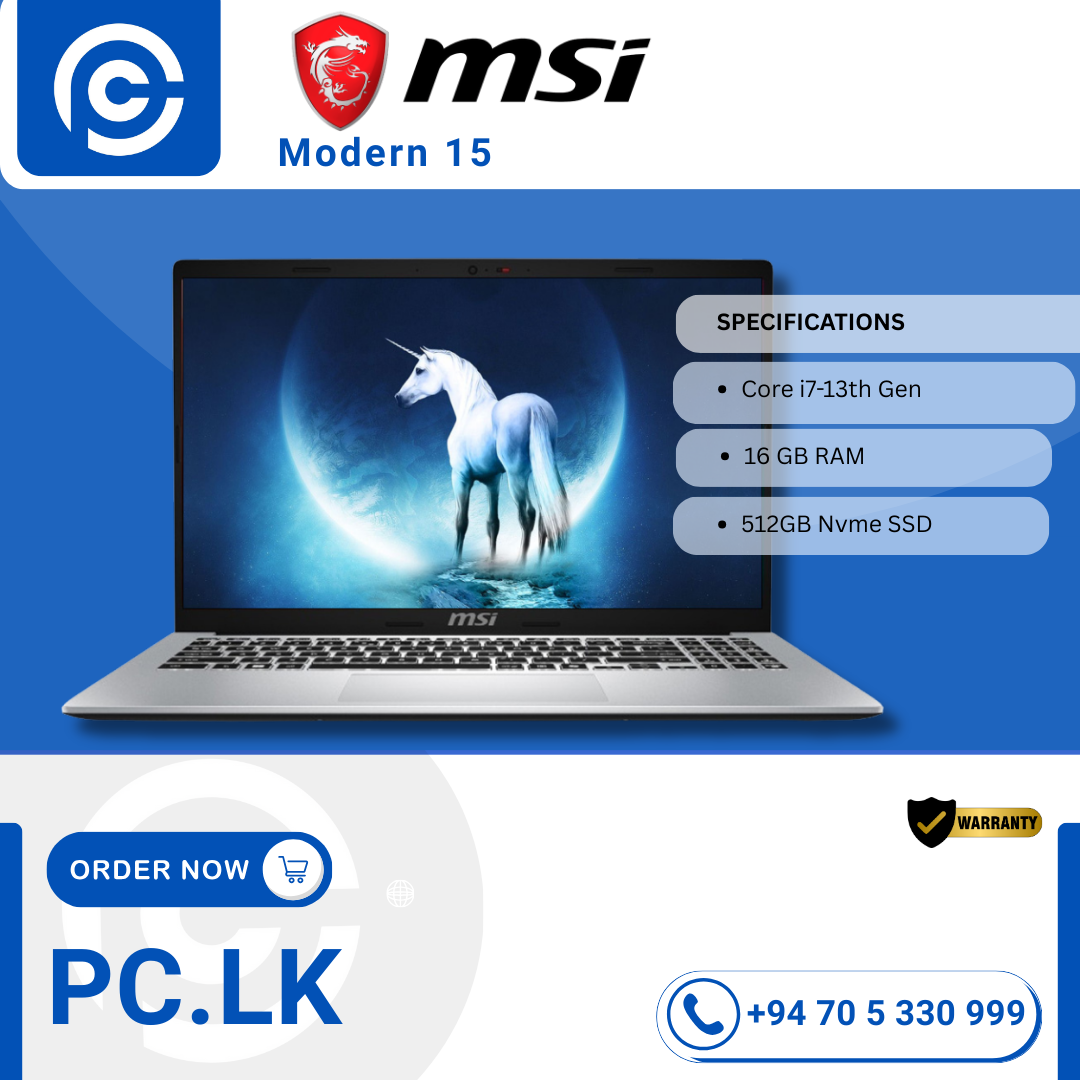 The MSI Modern 15 is a 15.6-inch mainstream laptop built for students, professionals, and everyday users who want a balance of performance, portability, and connectivity at a good value. It’s part of MSI’s Modern series, which focuses on sleek design and practical features for everyday tasks like web browsing, office work, video streaming, and light creative workloads. Msi Modern-15 Best Price In Sri Lanka